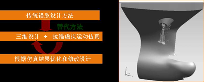 經(jīng)過(guò)與國(guó)內(nèi)行業(yè)權(quán)威設(shè)計(jì)院的合作過(guò),并將該技術(shù)應(yīng)用于船舶建造中,對(duì)錨鏈筒、錨臺(tái)、錨唇、錨穴、錨、錨鏈、錨機(jī)、止鏈器、導(dǎo)鏈滾輪、船體等進(jìn)行三維設(shè)計(jì)和自動(dòng)建模,實(shí)現(xiàn)了三維錨系計(jì),保證了錨系設(shè)計(jì)中空間位置定位的準(zhǔn)確性,并通過(guò)三維軟件導(dǎo)出二維CAD圖紙,扭轉(zhuǎn)了一直以來(lái)二維圖紙與船廠(chǎng)錨系施工脫節(jié)的局面,極大提高了錨系設(shè)計(jì)的效率。除此之外,利用軟件的后期的仿真功能,模擬并預(yù)報(bào)收錨過(guò)程的動(dòng)態(tài)效果并給出調(diào)整方案。